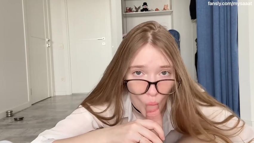 Очкастая студентка вернулась после учебы и случайно встретилась в коридоре с отчимом, который только что выскочил из душа и был полностью голым. Ни капли не смутившись того, что молоденькая падчерица видит его обнаженным, мужчина берет девушку за руку и кладет ей в ладонь свой пенис. Наверное, девушка мечтала о таком случает, ведь получив такую возможность, она не стала отказываться, а напротив, сама повела приемного папашу в свою спальню, где сделала все, что попросил похотливый папаша, начиная от горлового минета и заканчивая необычайно жарким откровенным сексом, с несколькими бурным окончаниями подряд.